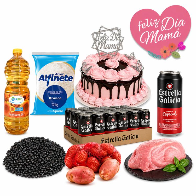 ·         1 x Cake de Merengue ·         1 x Pierna de Cerdo Deshuesada Cruda 2.5 Kg ·         1 x Arroz Alfinete 1 Kg ·         1 x Frijol Negro 1 Lb ·         1 x Aceite 1 Lt ·         1 x Bolsa de Papa 5 Lb ·         12 x Cerveza estrella de galicia